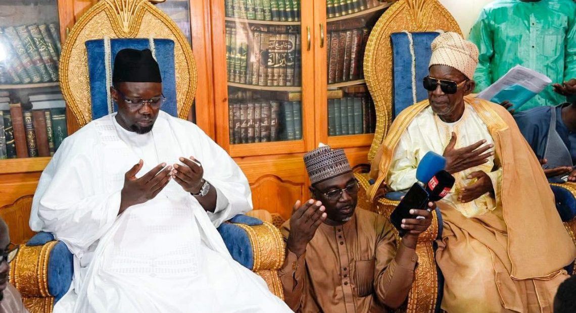 À Médina Baye, Ousmane Sonko : Le premier acte de développement, c’est de ne pas détourner l’argent du peuple, et le khalife souligne : Le Sénégal a besoin de dirigeants courageux et engagés, et vous en avez fait preuve